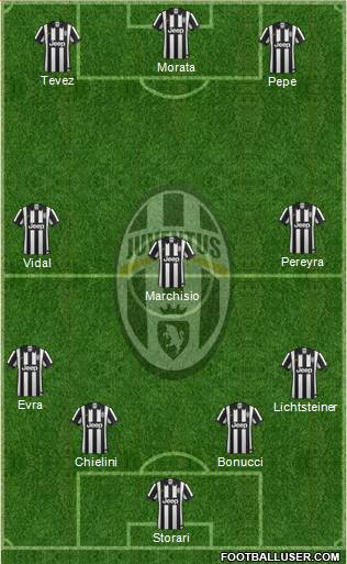 (4-3-3) Storari; Lichtsteiner, Bonucci, Chiellini, Evra; Pereyra, Marchisio, Vidal; Pepe, Morata, Tevez.