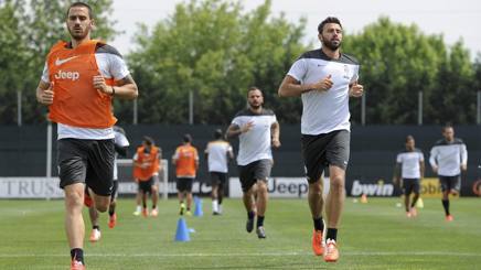 Bonucci and Barzagli in training: will pair in central defense since the injury of Chiellini. LaPresse